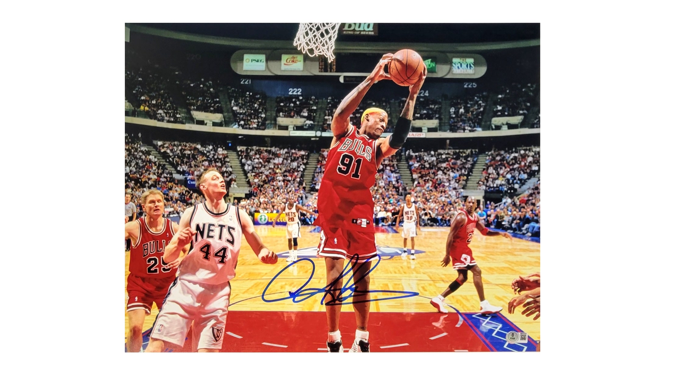 Dennis Rodman autograph signed Chicago Bulls vs. Nets 16×20 Photo (Beckett Authenticated)