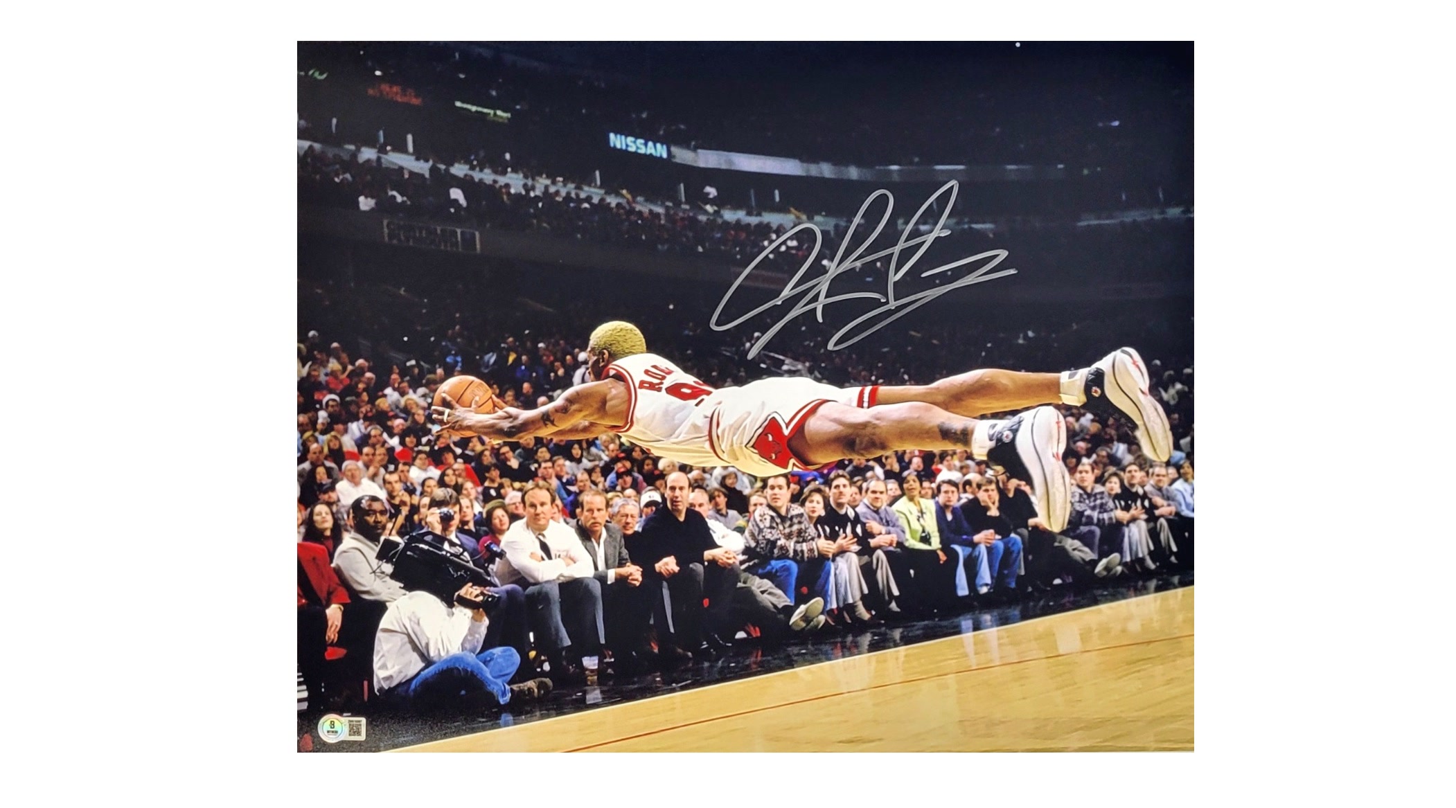 Dennis Rodman autograph signed Diving 16×20 Photo Chicago Bulls (Beckett Authenticated)