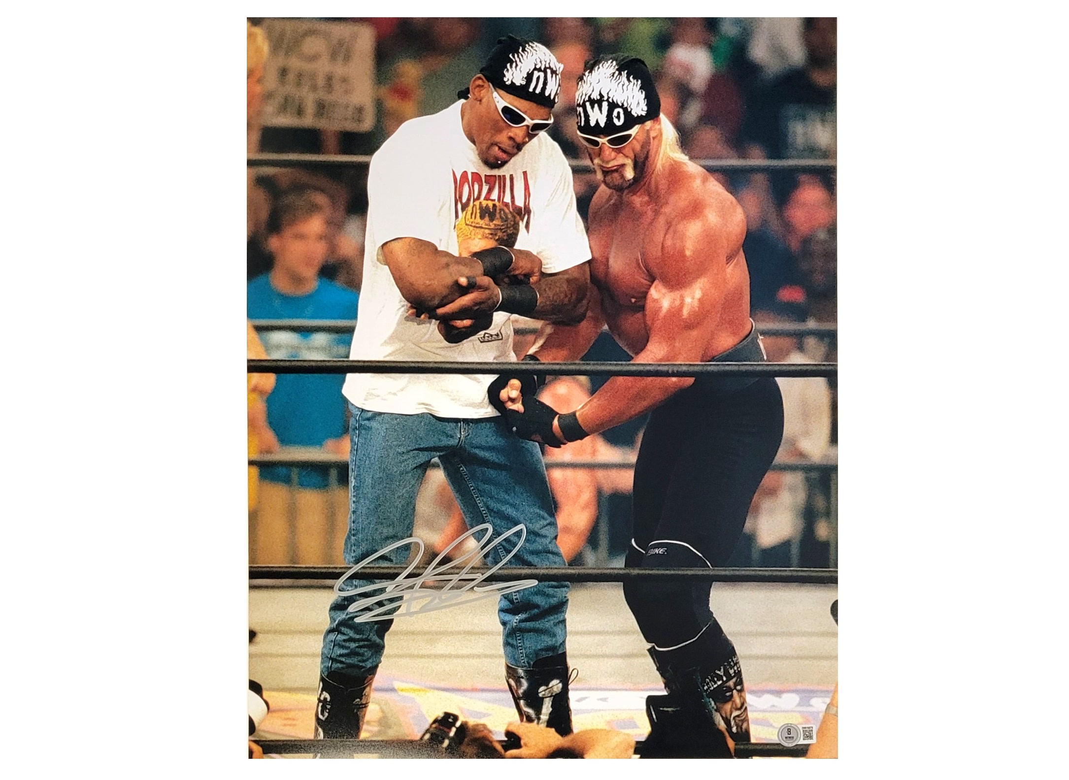 Dennis Rodman autograph signed WCW Wrestling 16×20 Photo w/ Hulk Hogan (Beckett Authenticated)