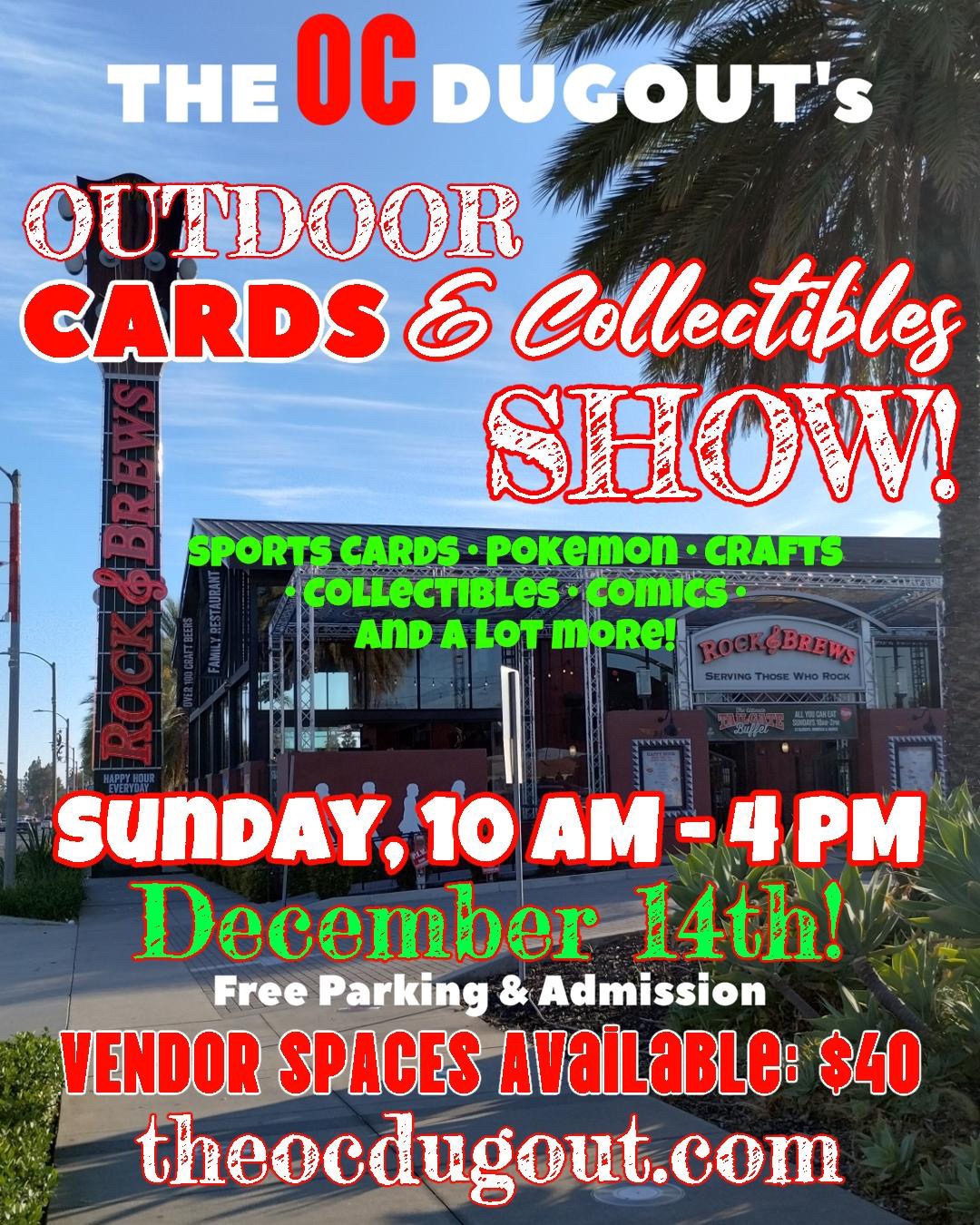 - We are hosting an outdoor Card Show / Collectibles Swap Meet on Sunday, December 14, 2025 in the parking lot of the Rock & Brews restaurant – near Knott’s Berry Farm in Buena Park.